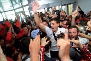 Plusieurs centaines de supporters attendaient leurs protégés à leur arrivée à Campu di l’Oru, samedi dernier. Une communion qui a fait vibré, sous le regard médusé de certains touristes, tout le peuple « rouge et bleu » et qui poursuivie en ville et au stade Ange Casanova tard, dans la soirée.